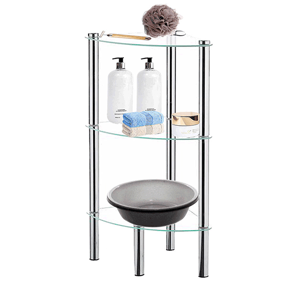 3 Tiers fan-shaped Clear Tempered Glass Side Table