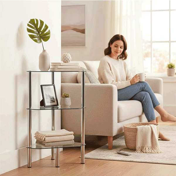 3 Tiers multilateral Clear Tempered Glass Side Table